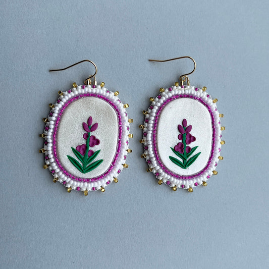 Fireweed Beaded Polymer Clay Earrings Large, Pearl