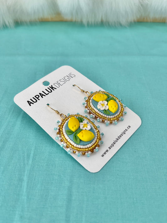Lemon Beaded Polymer Clay Earrings Small