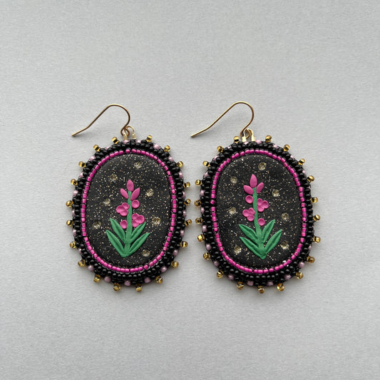 Fireweed Beaded Polymer Clay Earrings Large, Black