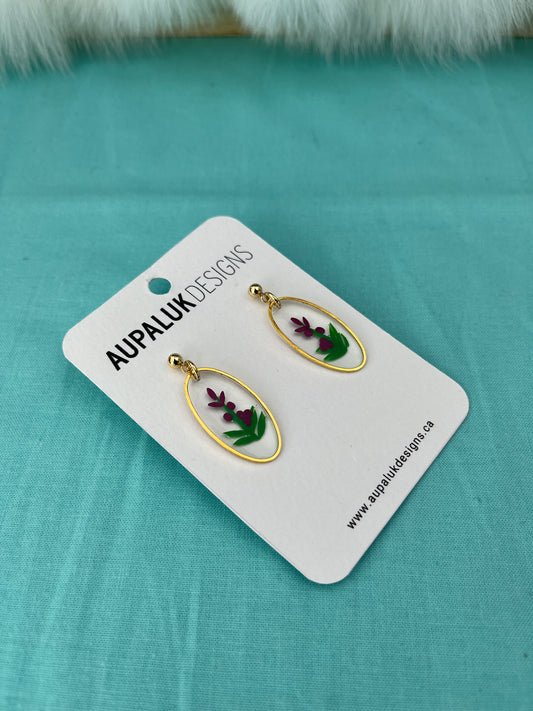 Fireweed Resin and Polymer Clay Earrings, Oval