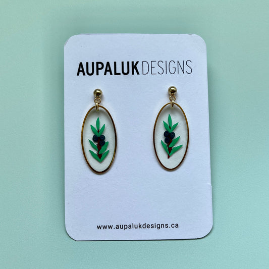 Crowberry Resin and Polymer Clay Earrings, Oval