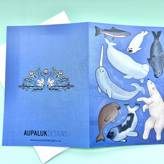 Hand drawn art greetings cards by Inuk artist Eleanor Partridge. $7 each or buy 4 cards for $22.