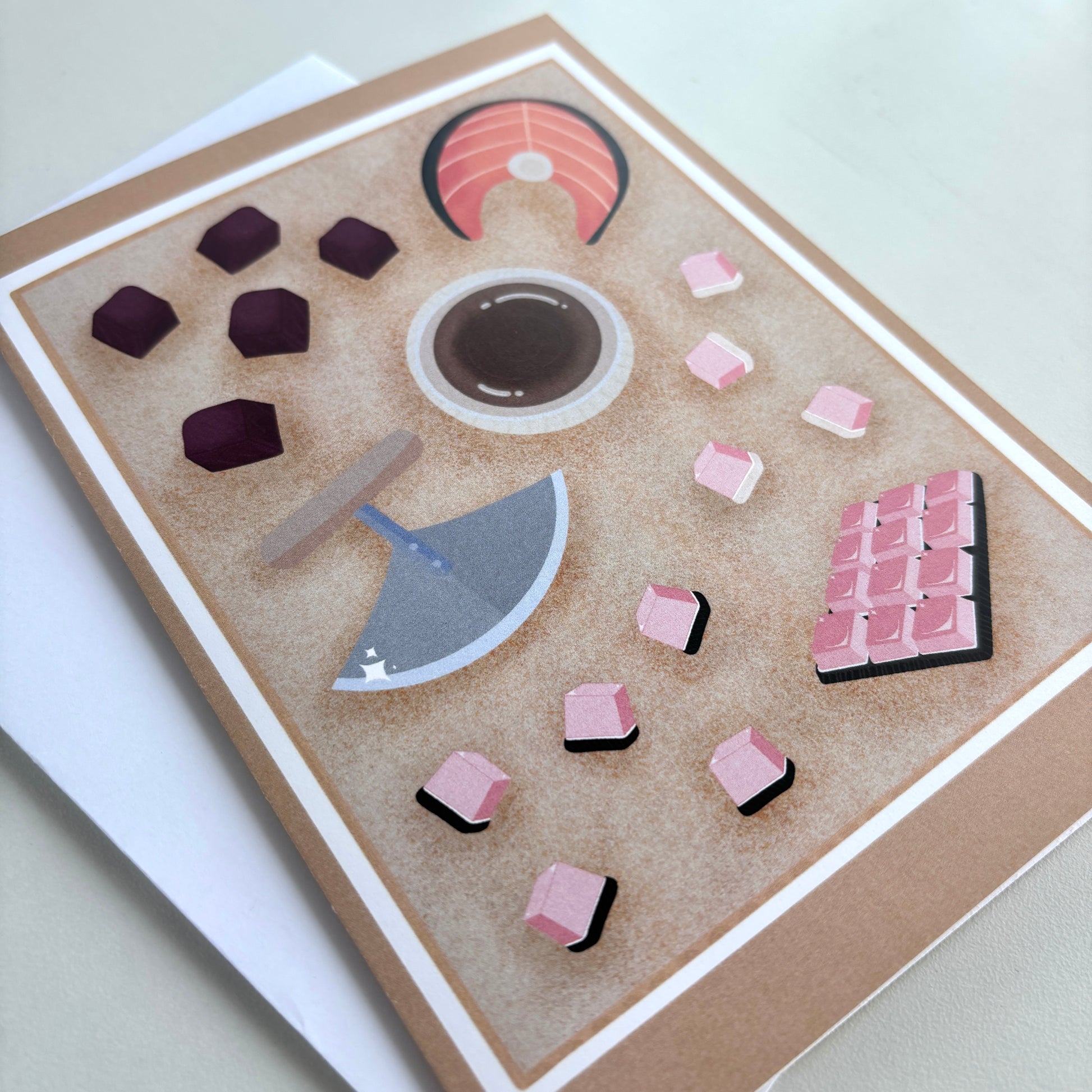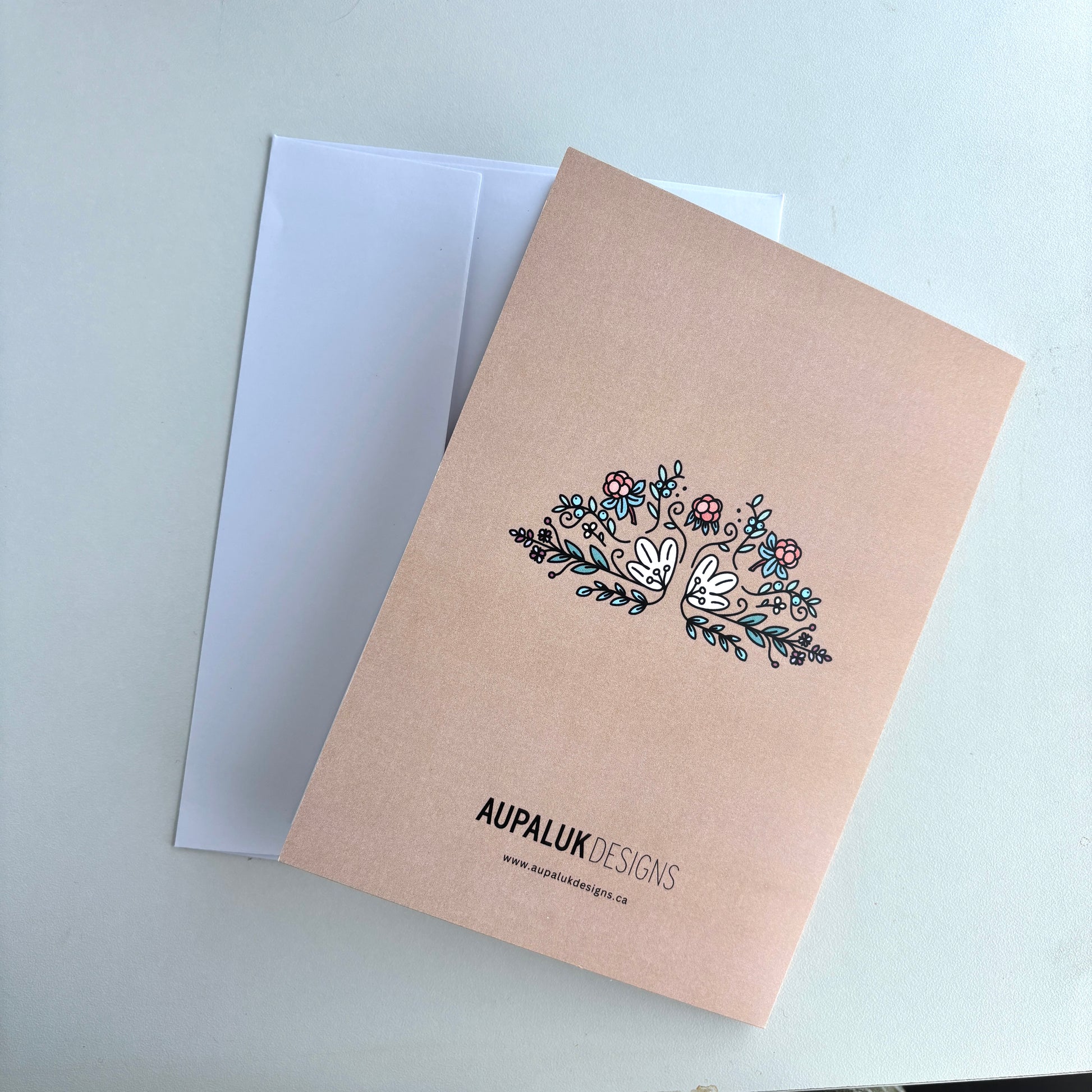 Country Food art printed 5x7 greeting card with envelope. One greeting card and envelope included. Hand drawn art card by Inuk artist Eleanor Partridge.